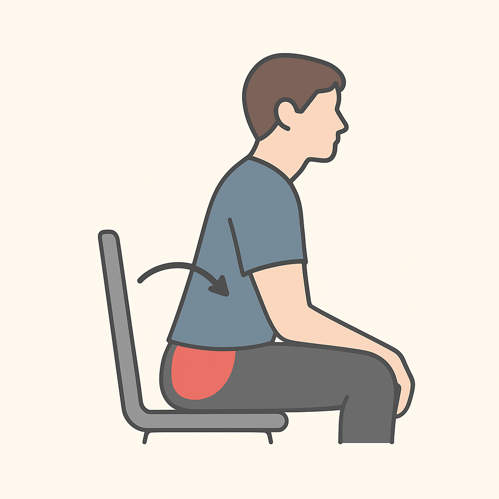 - 매일 반복(수주~수개월): 고관절 굴곡근 단축, 요추 전만 변화, 어깨 전방화(라운드 숄더)가 구조적으로 굳어져 통증 재발 가능성이 높아집니다.