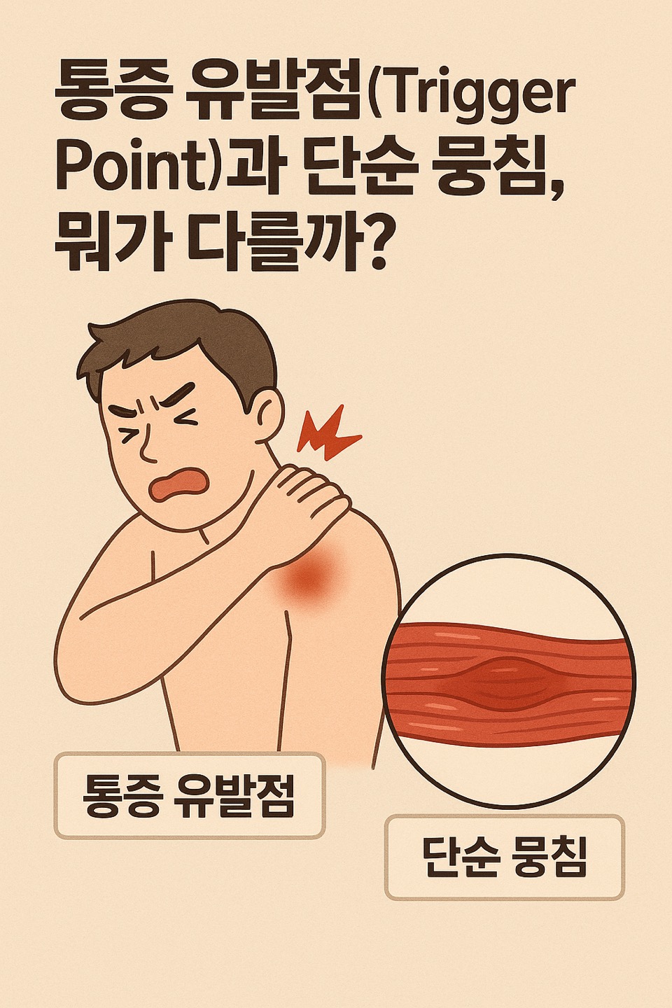 | 단순 뭉침 | 과사용, 피로, 순환 저하로 생긴 근육의 긴장 | 무겁고 둔한 느낌, 이완 시 완화 |