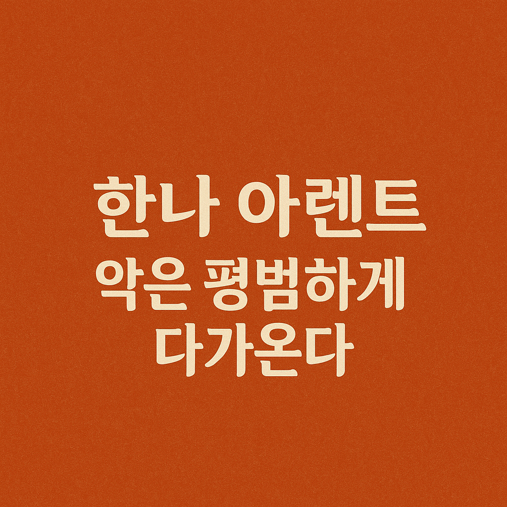 한나 아렌트가 남긴 “악은 평범하게 다가온다”는 말은 우리 각자가 일상의 작은 선택 속에서 얼마나 중요한 역할을 하고 있는지를 일깨워 줍니다. 악은 멀리 있는 괴물이 아니라, ‘생각하지 않는 평범함’ 속에서 피어납니다.